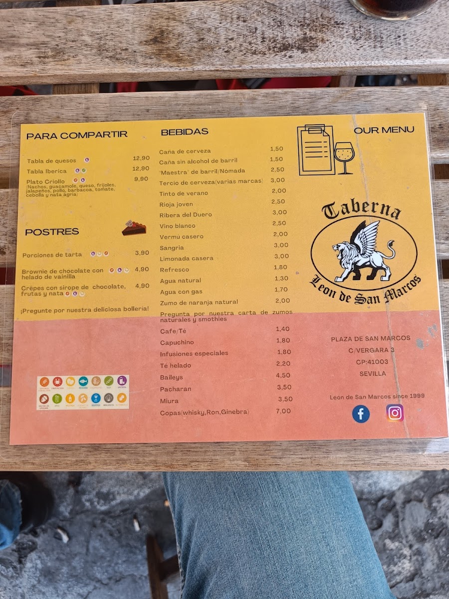 Bar León de San Marcos, nestled in the charming Casco Antiguo of Sevilla, is a welcoming café known for its friendly service and vibrant atmosphere. Customers rave about the delectable options available throughout the day, including satisfying breakfasts and delicious takeaway sandwiches. The café offers a delightful selection of beverages, from strong coffee to refreshing vermouth, perfect for enjoying in the sunny square. The staff are praised for their patience and hospitality, making it an ideal spot for solo travelers and groups alike. Whether you’re dining inside or outside, Bar León de San Marcos promises a cozy experience worth revisiting.